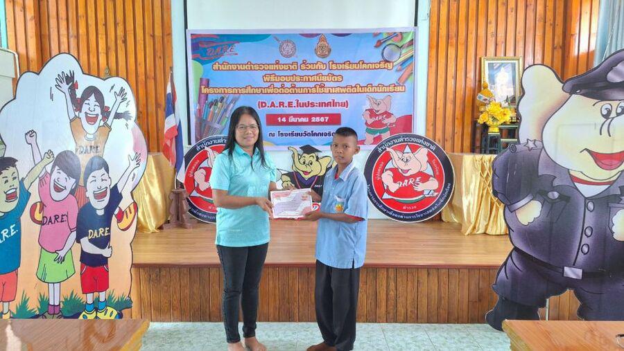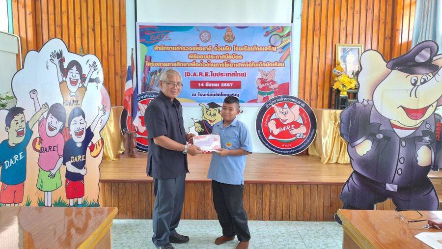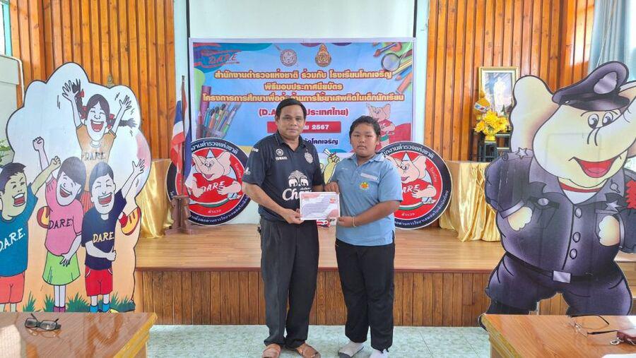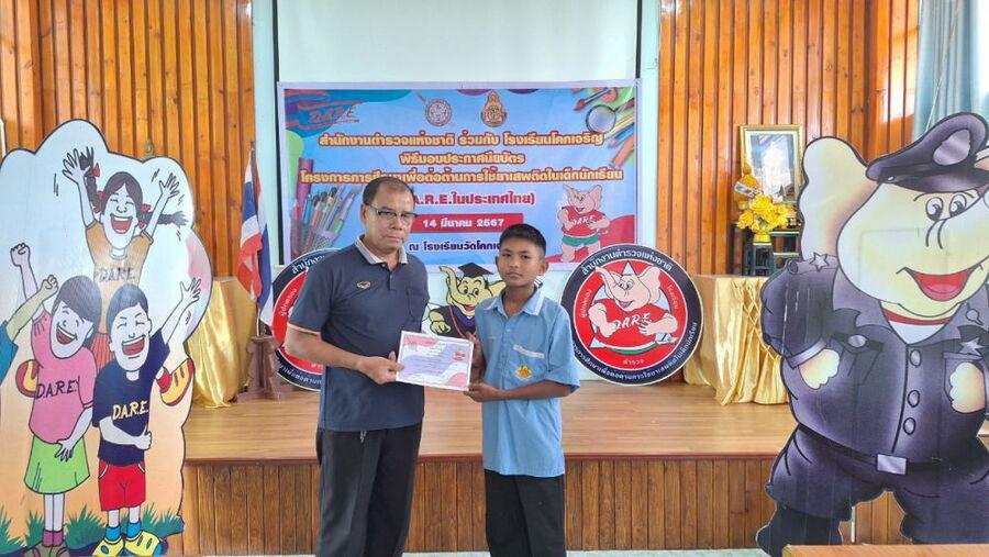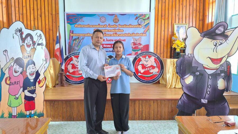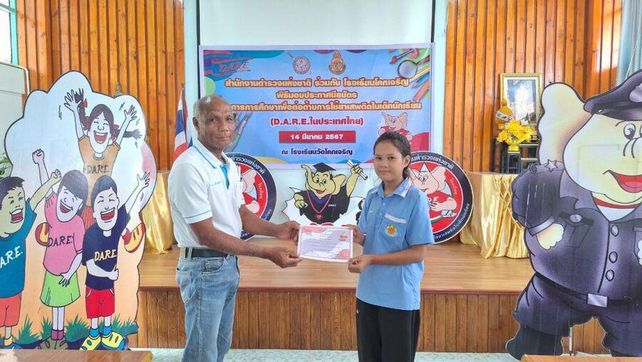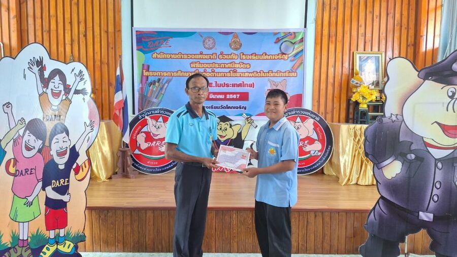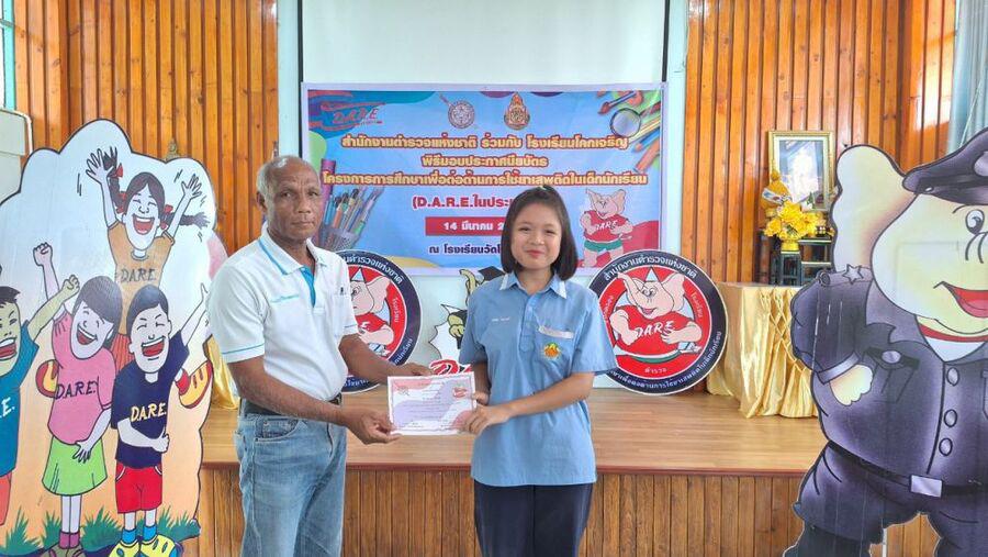 เมื่อวันที่ 15 มีนาคม 2567 พ.ต.ต.วรพัทธ์ ชำนาญกลาง สวป. (ชุมชนสัมพันธ์) สภ.ละหานทราย หรือ ครูแดร์ มอบเกียรติบัตรให้แก่นักเรียนชั้นประถมศึกษาปีที่5 และชั้นประถมศึกษาปีที่ 6 ในการฝึกอบรม ?โครงการการศึกษาเพื่อ ต่อต้านการใช้ยาเสพติดในเด็กนักเรียน ( D.A.R.E )? S:0