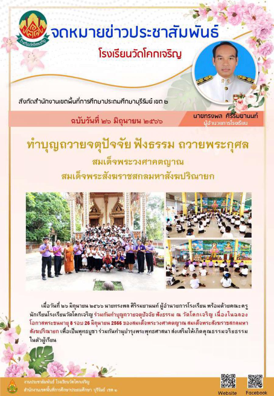 ทำบุญถวายจตุปัจจัย ฟังธรรม ถวายพระกุศล สมเด็จพระวงศาคตญาณ สมเด็จพระสังฆราชสกลมหาสังฆปริณายก