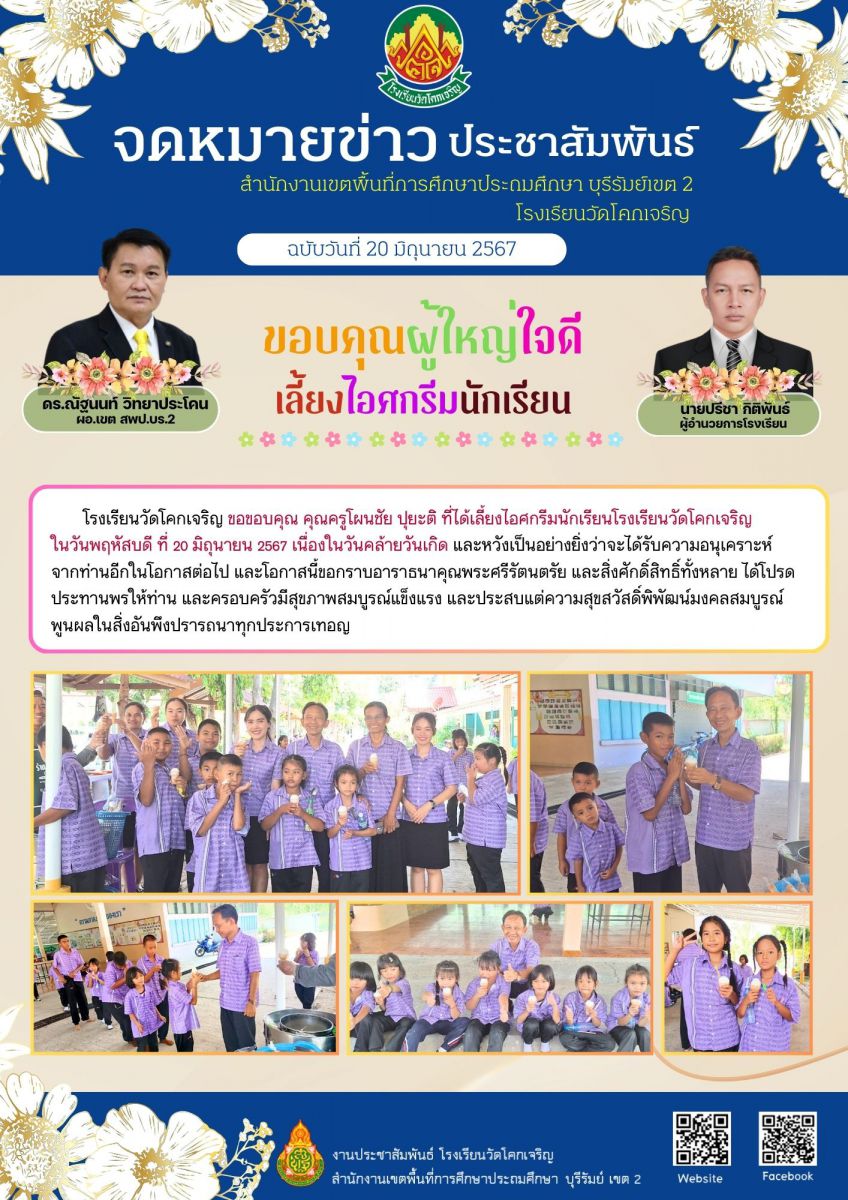 ขอบคุณผู้ใหญ่ใจดี เลี้ยงไอศกรีมนักเรียน( ครูโผนชัย)