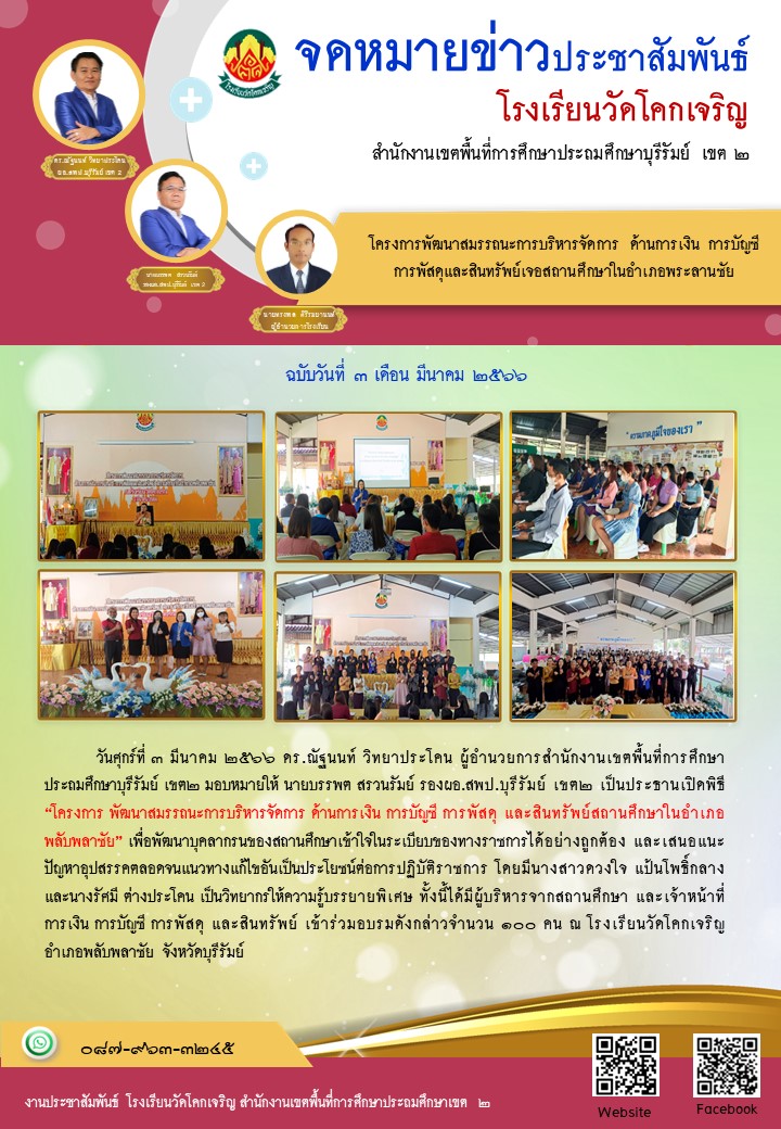 อบรมโครงการพัฒนาสมรรถนะการบริหารจัดการ ด้านการเงิน การบัญชี การพัสดุและสินทรัพย์เจอสถานศึกษาในอำเภอพระลานชัย