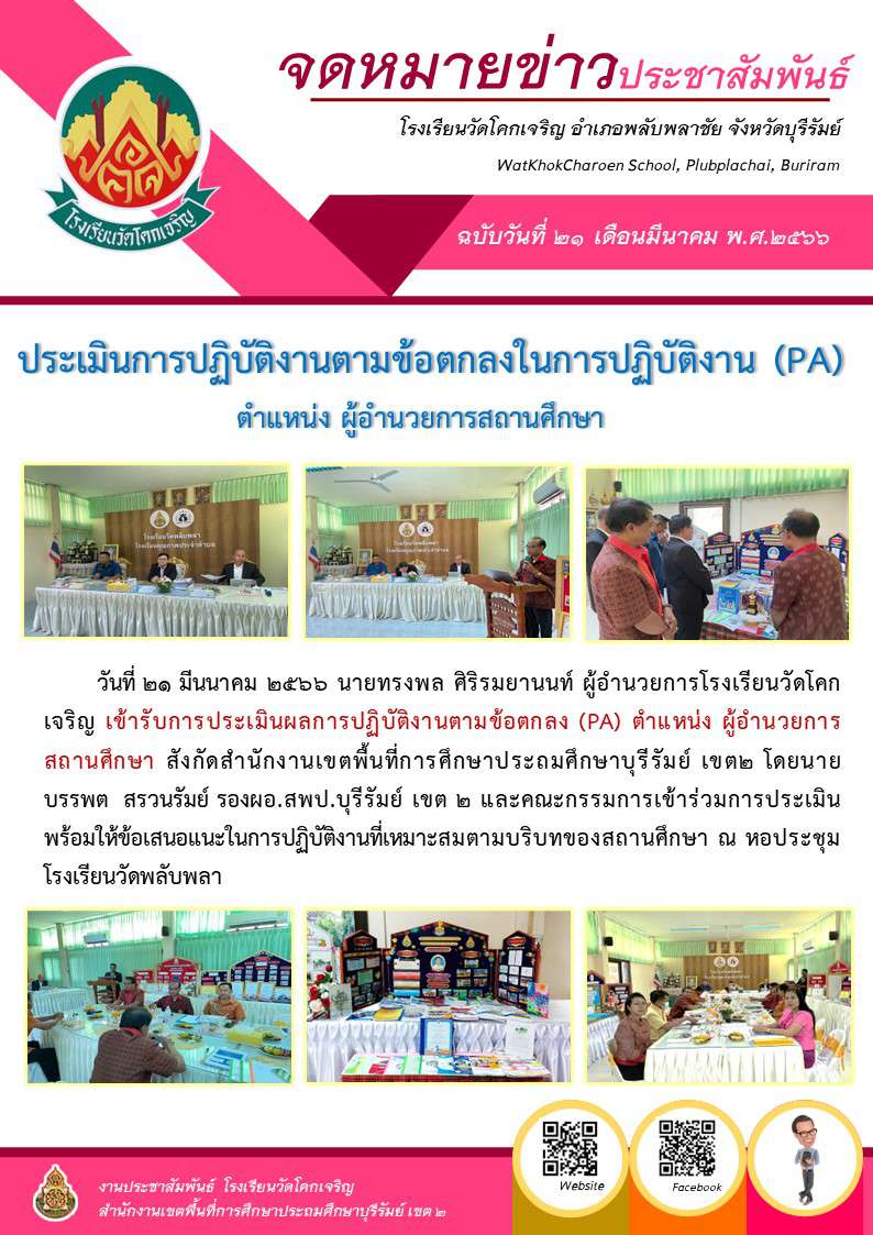 ผู้อำนวยการเข้ารับการประเมินผลการปฏิบัติงานตามข้อตกลง (PA) ตำแหน่ง ผู้อำนวยการสถานศึกษา