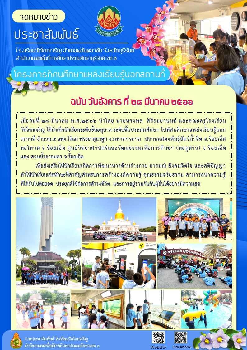 โครงการทัศนศึกษาแหล่งเรียนรู้นอกสถานที่ ปีการศึกษา 2565