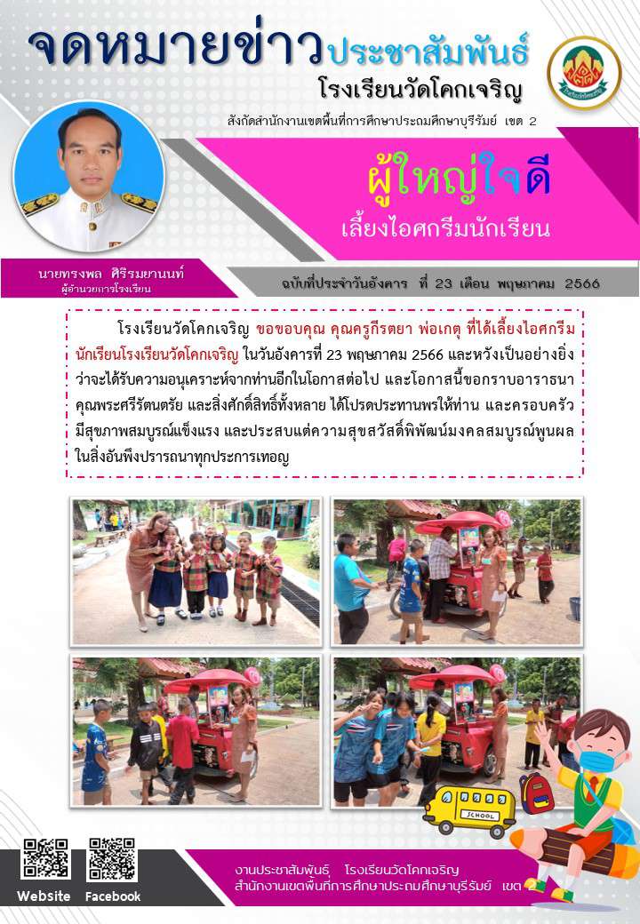 ขอขอบคุณคุณครูกีรตยา พ่อเกตุ ที่ได้เลี้ยงไอศกรีมนักเรียนโรงเรียนวัดโคกเจริญ