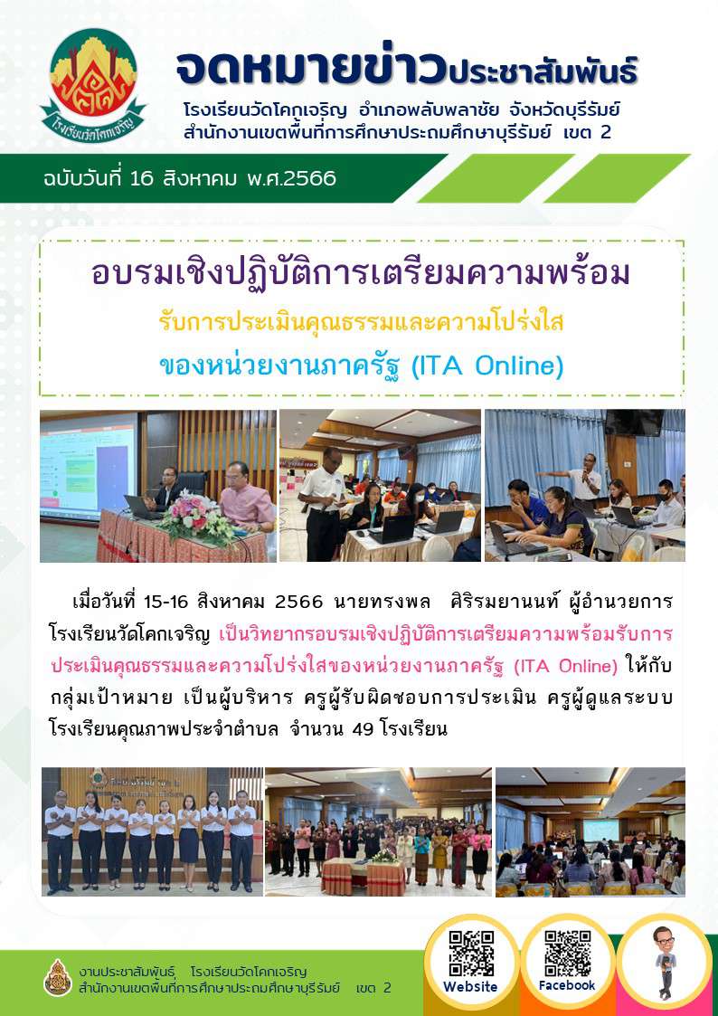 อบรมเชิงปฏิบัติการเตรียมความพร้อม รับการประเมินคุณธรรมและความโปร่งใส ของหน่วยงานภาครัฐ (ITA Online)