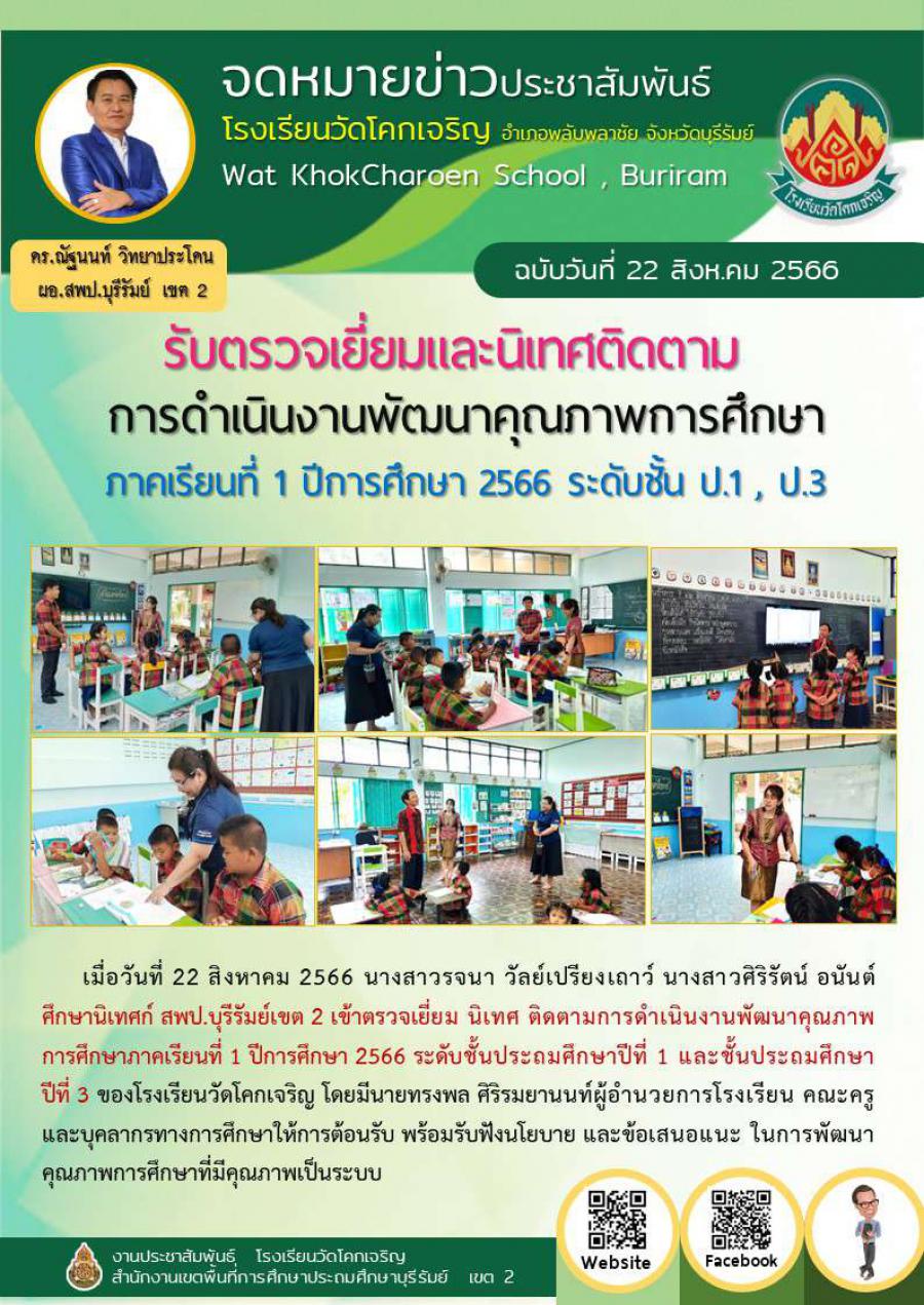 รับตรวจเยี่ยมและนิเทศติดตามการดำเนินงานพัฒนาคุณภาพการศึกษา ภาคเรียนที่ 1 ปีการศึกษา 2566 ระดับชั้น ป.1 , ป.3