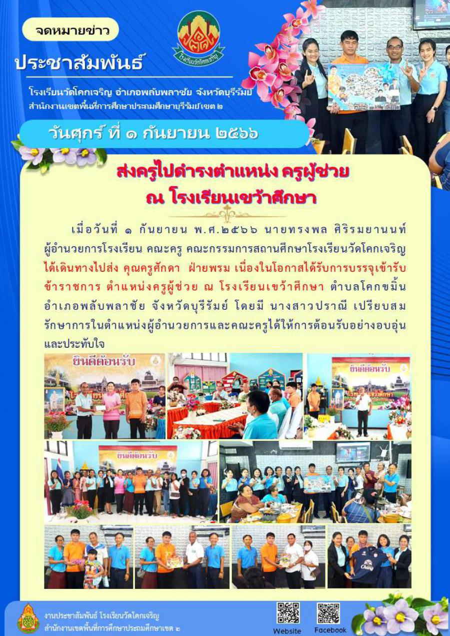 ส่ง คุณครูศักดา ฝ่ายพรม เนื่องในโอกาสได้รับการบรรจุเข้ารับข้าราชการ ตำแหน่งครูผู้ช่วย ณ โรงเรียนเขว้าศึกษา