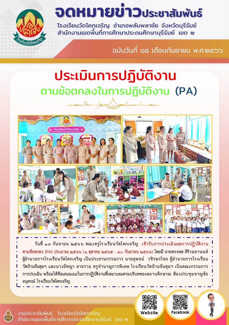 เข้ารับการประเมินผลการปฏิบัติงานตามข้อตกลง (PA) ประมาณ 2566 (1 ตุลาคม 2565 - 30 กันยายน 2566)