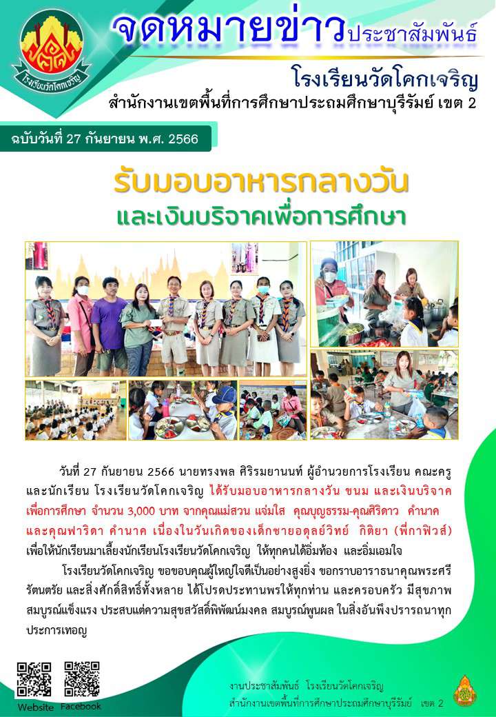 รับมอบอาหารกลางวัน และเงินบริจาคเพื่อการศึกษา